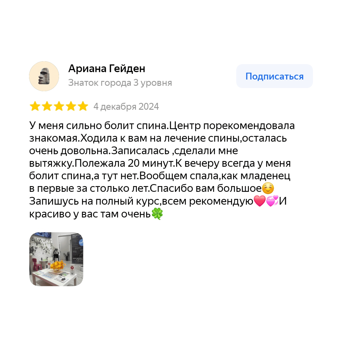 У нас есть всё необходимое оборудование: виброкушетка, квант-платформа с низкочастотным магнитным полем, аппараты для физиотерапии. Специалисты центра применяют комплексный подход для решения проблем со здоровьем позвоночника и суставов.